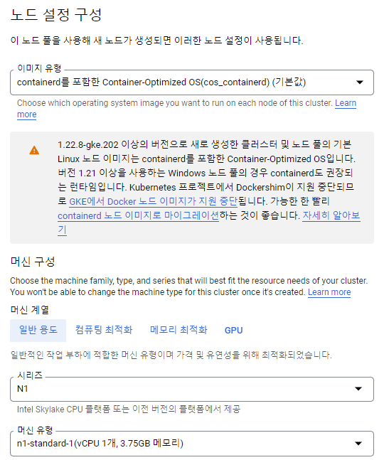 - GCP는 모든 기능을 설치해 두지 않기 때문에, 클릭할 때 설치가 진행된다(시간이 걸림)