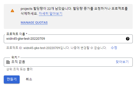 - 프로젝트 이름과 프로젝트 ID를 고유 이름으로 만들어야 관리하기 편하다