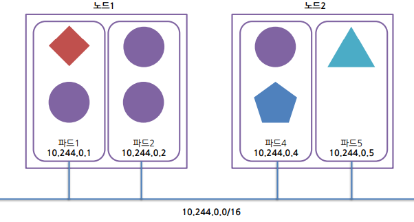 - 쿠버네티스 클러스터의 모든 파드는 공유된 단일 플랫, 네트워크 주소 공간에 위치