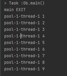 - es.execute(io)는 별도의 스레드(pool-1-thread-1)를 만들어 해당 스레드에서 이를 처리하도록 하고, mainThread는 그대로 실행 되도록 작성해두엇기 때문에 mainThread에 작성된 것이 먼저 출력된다.