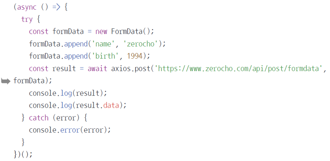 - Axios의 data 자리에 formData를 넣어서 보내면 됨