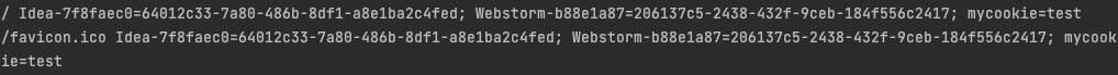 - 두 번째 요청인 favicon.ico에 쿠키가 넣어짐