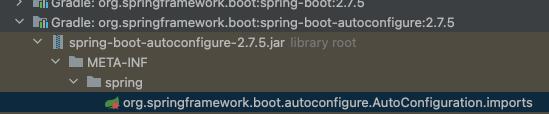 - 메타데이터 파일은 이전에 META-INF/spring.factories 였으나 현재는 META-INF/spring/org.springframework.boot.autoconfigure.AutoConfiguration.import s이다.