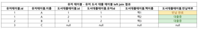 - 기준 테이블에 데이터가 있고, 대상테이블에 데이터가 없는 경우에도 데이터가 null로 출력이 된다.