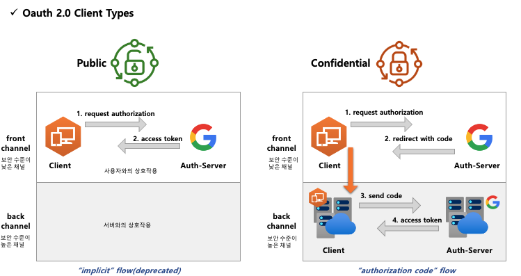 - 기밀 클라이언트는 client_secret의 기밀성을 유지할 수 있는 클라이언트를 의미한다.