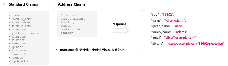 - 클라이언트는 클레임 정보에 포함되어 있는 사용자명, 이메일을 활용하여 인증 관리를 할 수 있다