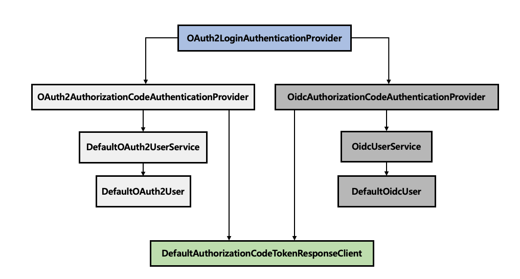 - ProviderManager는 OAuth2LoginAuthenticationProvider를 찾아 토큰을 전달하고, (OAuth2AuthorizationCodeAuthenticationProvider/ OidcAuthorizationCodeAuthenticationProvider)에 전달한다