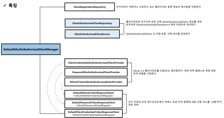 - OAuth2AuthorizedClient 를 전반적으로 관리하는 인터페이스
