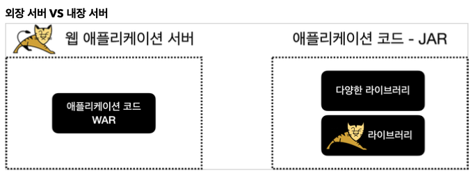 이런 문제를 해결하기 위해 톰캣을 라이브러리로 제공하는 내장 톰캣(embed tomcat) 기능을 제공한다.