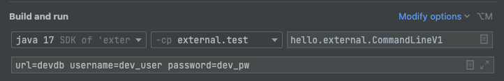 커맨드 라인 인수를 key=value 형식으로 구분하는 방법이 필요하다. 그래서 스프링에서는 커맨드 라인 인수를 key=value 형식으로 편리하게 사용할 수 있도록 스프링 만의 표준 방식을 정의했는데, 그것이 바로 커맨드 라인 옵션 인수이다.
