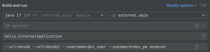- url , username , password 는 옵션 인수이므로 appArgs.getOptionValues(key) 로 조회할 수 있다.