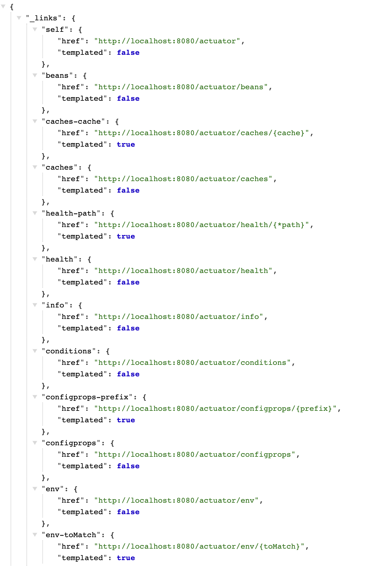 http://localhost:8080/actuator로 접근하면, 기본적으로 제공하는 기능을 사용할 수 있다.