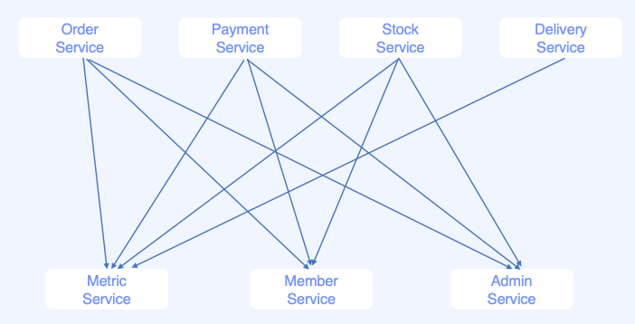 - 서비스가 다른 서비스를 직접 호출하도록 구성했을 때, 발생하는 문제점