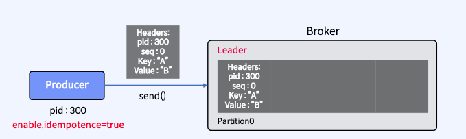 • Producer가 메시지 전송을 다시 시도하더라도 메시지가 최종 Consumer에게 정확히 한 번 전달됨