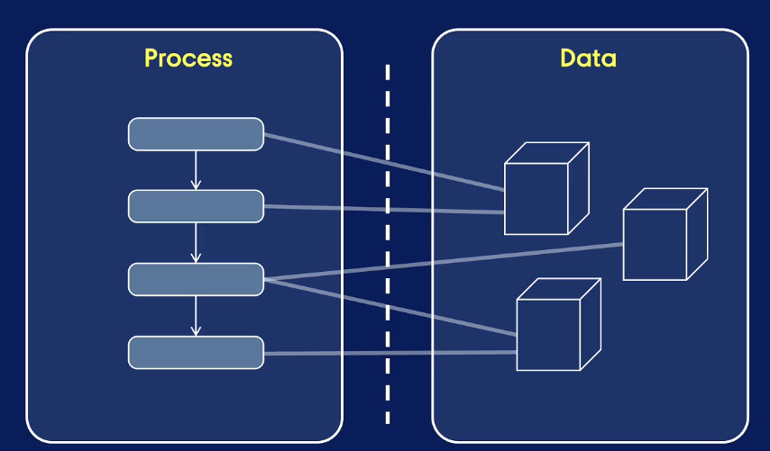 - 데이터를 사용하는 방식은 프로세스가 결정하게 되는데 데이터를 설계할 떄는 데이터가 사용될 프로세스에 대해서는 전혀 고려하지 않고 있다.