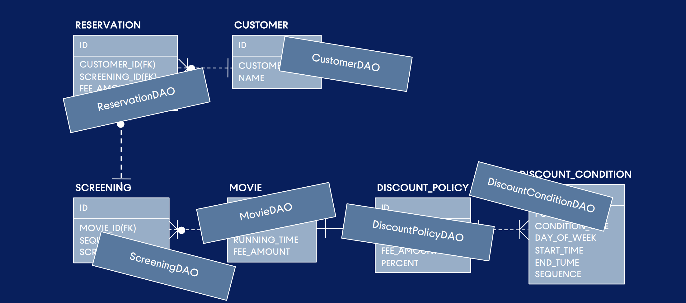 - DAO는 보통 테이블당 하나씩 존재한다.