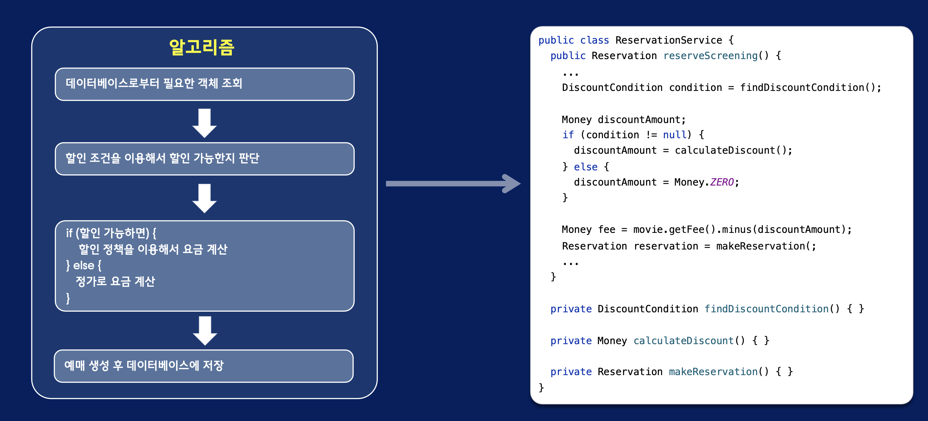 객체지향 설계: 알고리즘의 각 단계를 책임 관점에서 여러 객체로 분배