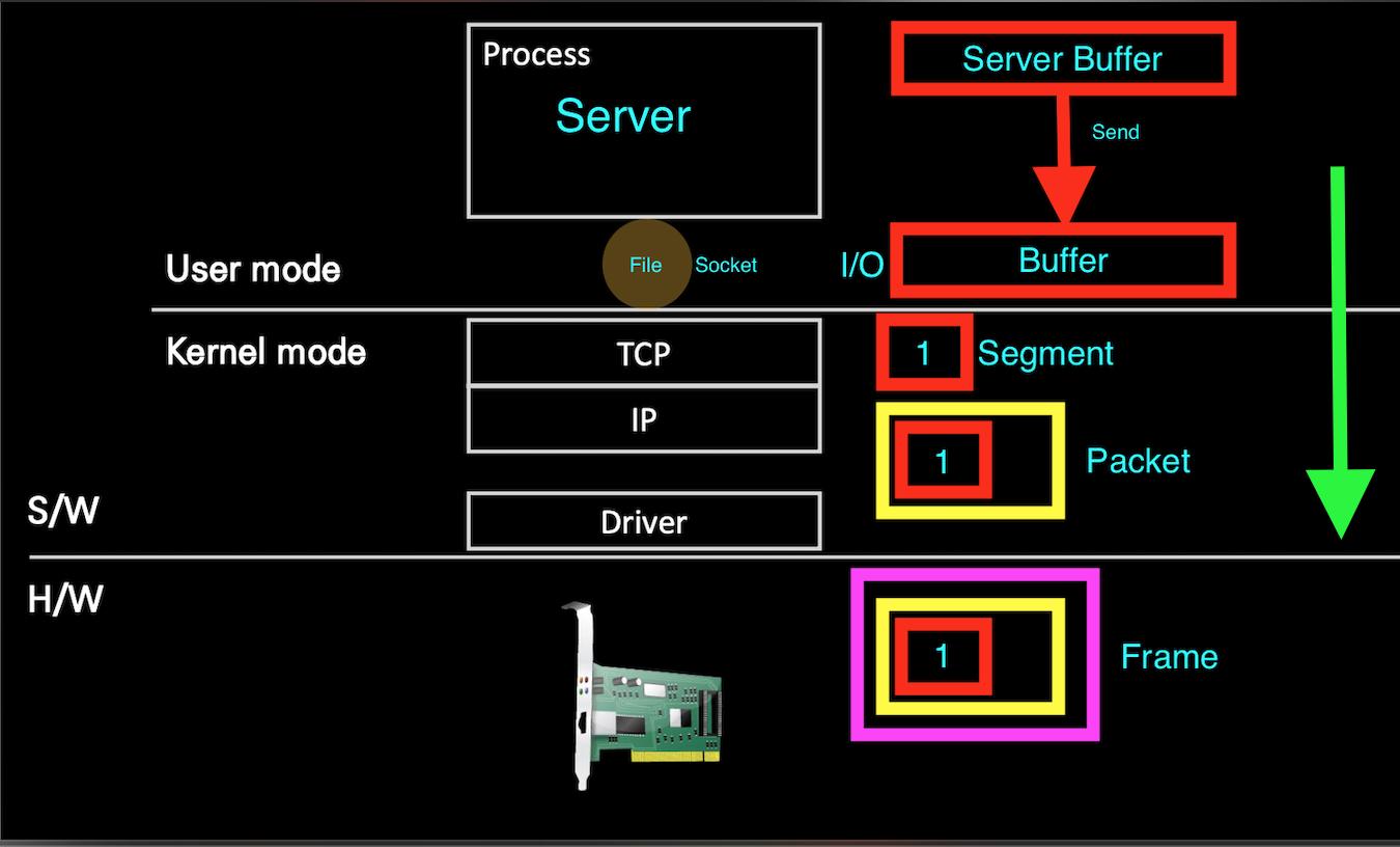 - Frame에서 Packet을 꺼내고, 해당 Packet에서 Segment를 뽑아서 Socket I/O Buffer에 채운다.