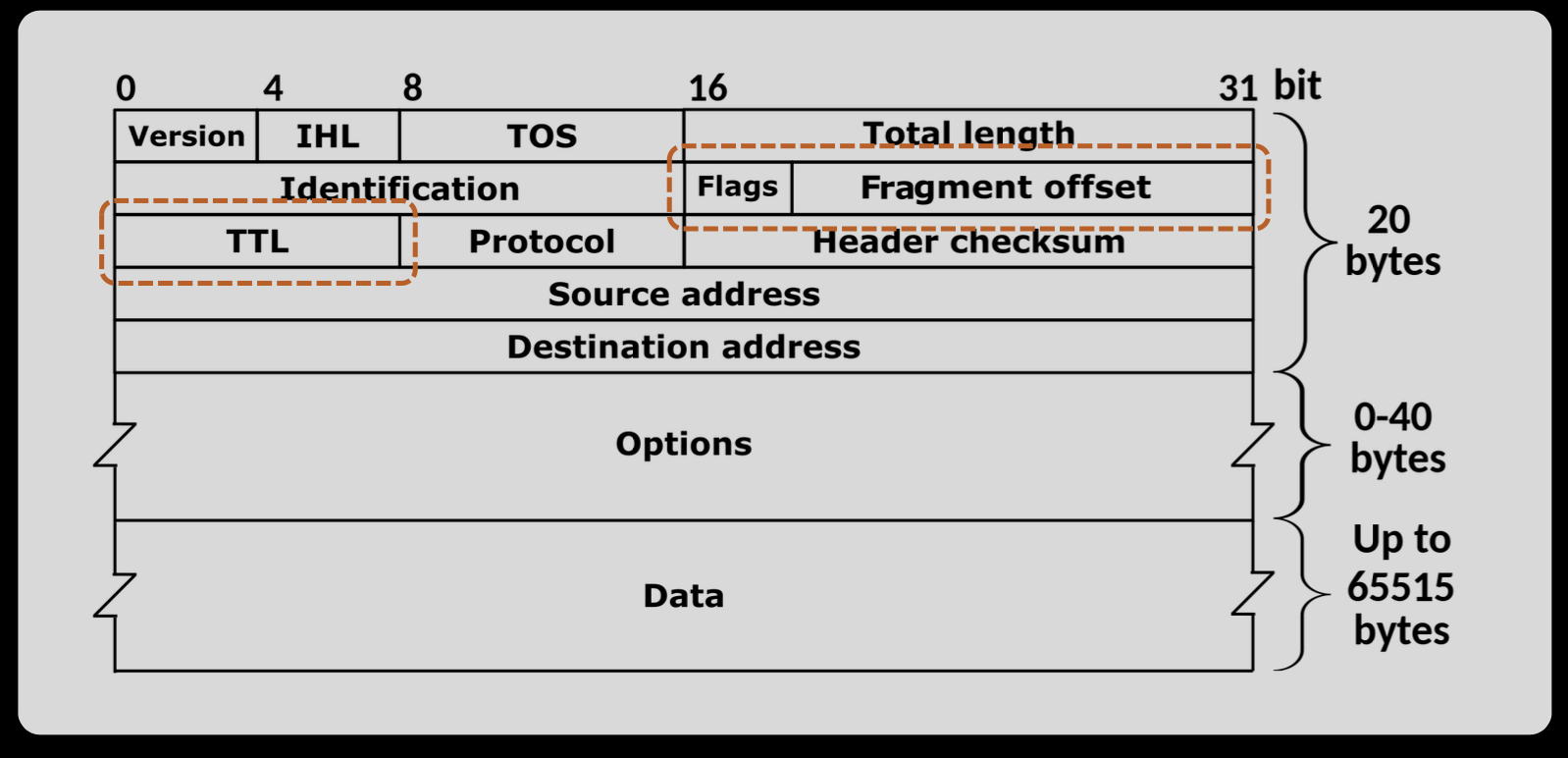 - TTL : 최대 크기는 255이며, 이 값이 0이 되면 해당 패킷은 버려진다. (홉을 지날 때마다 감소)