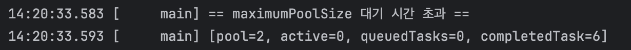 - maximumPoolSize : 스레드 풀에서 관리되는 최대 스레드 수