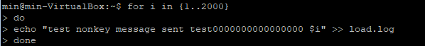 for i in {1..2000}; do echo "test nonkey message sent test0000000000000000 $i" >> load.log; done