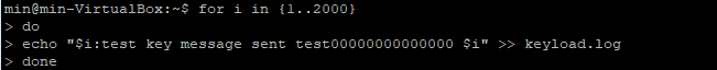 echo "$i:test key message sent test00000000000000 $i" >> keyload.log