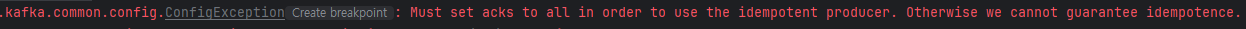 - 명시적으로 enable.idempotence=true 를 설정한 뒤, 다른 파라미터를 잘못 설정하면, Config 오류가 발생하면서 Producer가 기동되지 않음