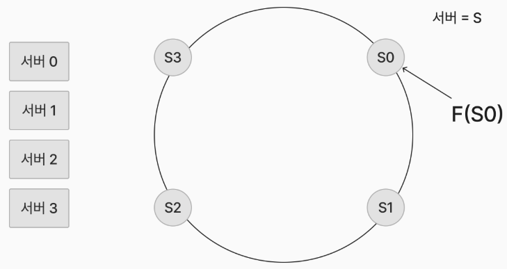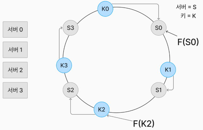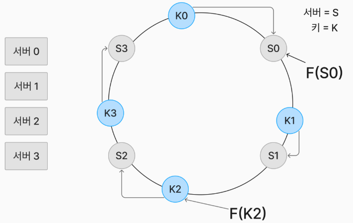 - 해시 키를 f(x) 함수에 적용해 각 해시 링 위로 적용할 수 있다.