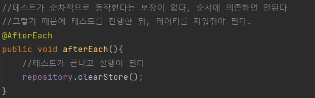 - 따라서 테스트를 진행 후, 데이터를 제거해 주어야 된다.