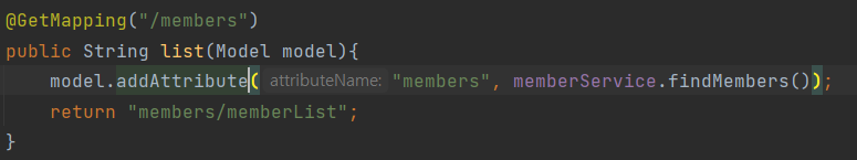 • memberList를 받아 출력하는 폼으로 보내준다.