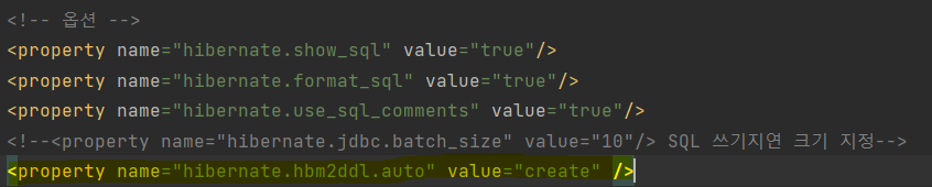 create-drop  create와 같으나 종료시점에 테이블 DROP