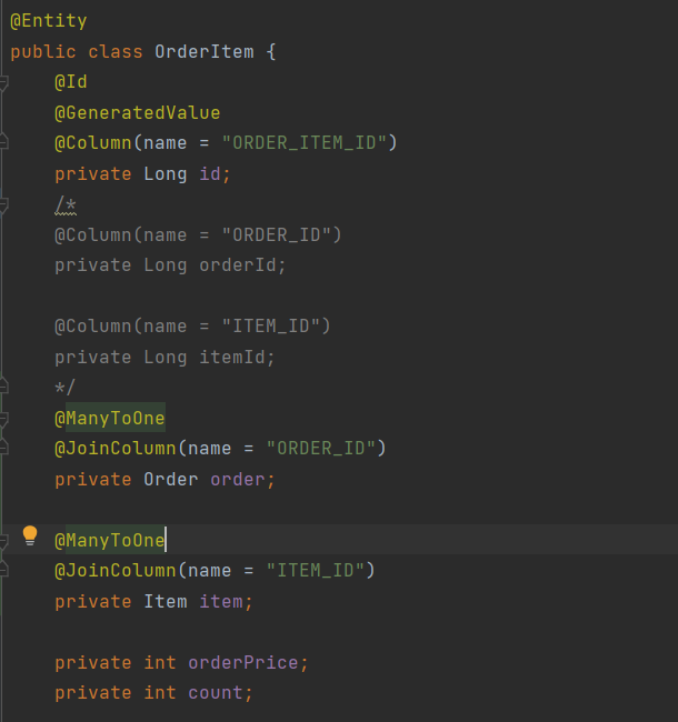 - orderItems 같은경우 연관관계의 주인이 아니므로 mappedby 옵션을 추가한다.