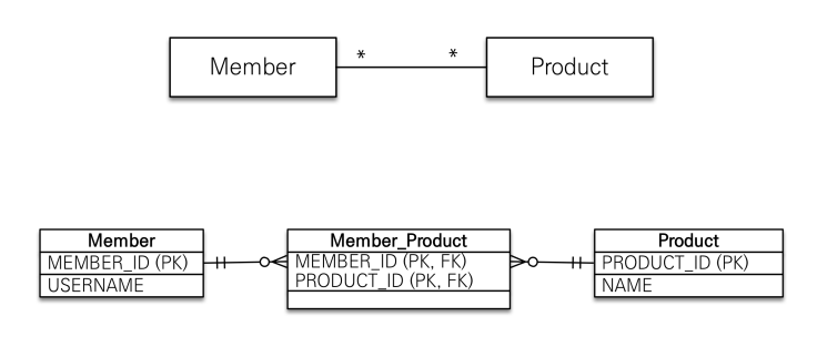 - 객체는 컬렉션을 사용해서 객체 2개로 다대다 관계 가능