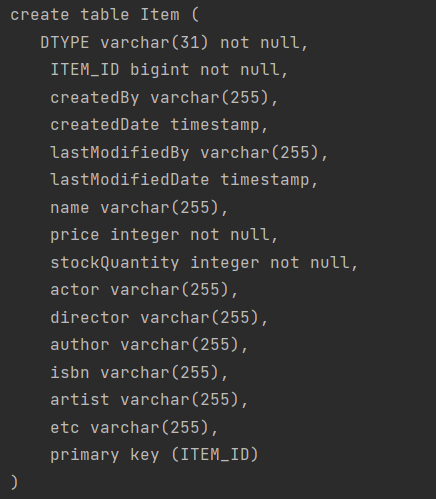 - @DiscriminatorValue 어노테이션을 설정하지 않았으므로 기본적으로 DTYPE에 클래스의 이름이 들어간다.