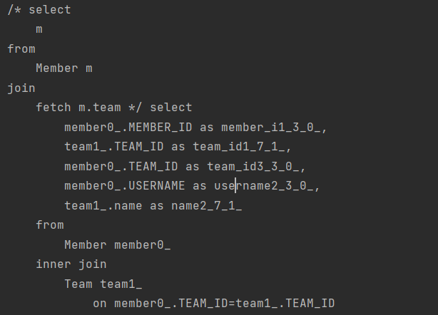 List<Member> members = em.createQuery("select m from Member m join fetch m.team",Member.class).getResultList();