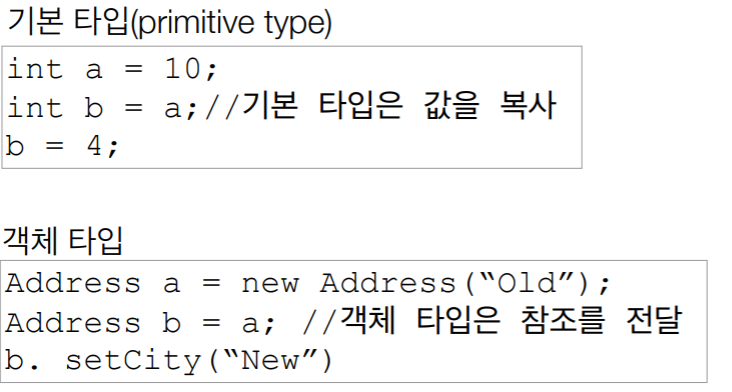 • 자바 기본 타입에 값을 대입하면 값을 복사한다.