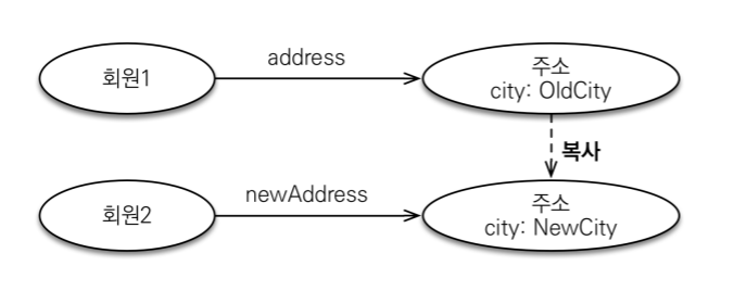 • 값 타입의 실제 인스턴스인 값을 공유하는 것은 위험