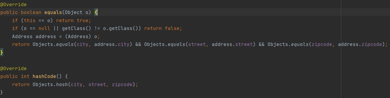 • 값 타입의 equals() 메서드를 적절하게 재정의(주로 모든 필드 사용)
