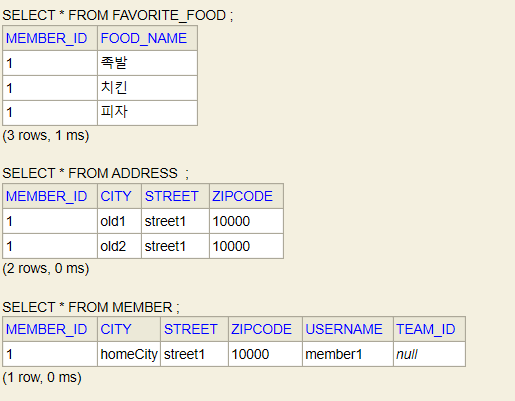 값 타입 컬랙션 예제