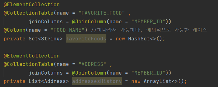 - 실무에서는 상황에 따라 값 타입 컬렉션 대신에 일대다 관계를 고려