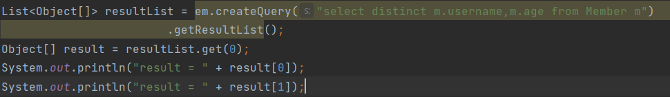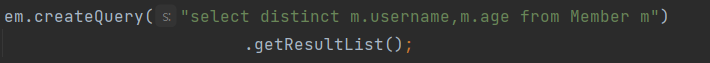 인베디드 프로젝션 -> 조회해온 대상을 select 값이 값타입이다.