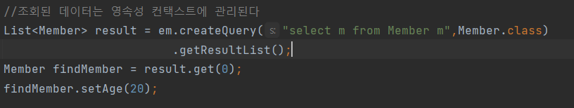 스칼라 타입 프로젝션 -> 조회해온 대상을 select 값이 스칼라 타입이다.