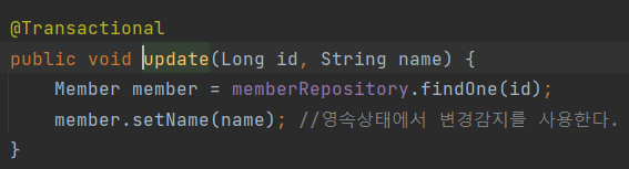 - JPA의 변경감지를 활용하여 해당 데이터를 수정을 진행해준다.