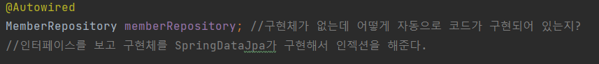 - interface를 보고 SpringDataJpa가 만들어 주입시킨다.