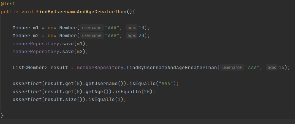 - username, age를 파라미터로 받아 쿼리를 실행한다.