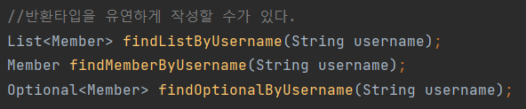 스프링 데이터 JPA는 유연한 반환 타입 지원