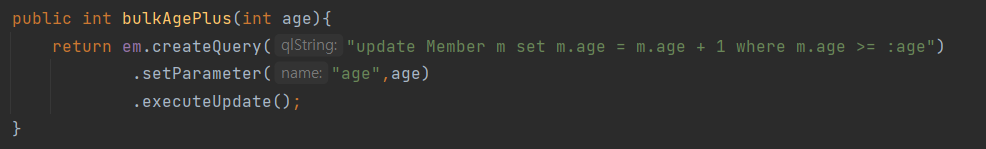 - 벌크성 수정, 삭제 쿼리는 @Modifying 어노테이션을 사용