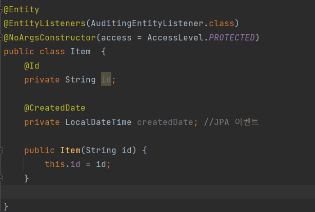 참고로 등록시간( @CreatedDate )을 조합해서 사용하면 이 필드로 새로운 엔티티 여부를 편리하게 확인할 수 있다. (@CreatedDate에 값이 없으면 새로운 엔티티로 판단)
