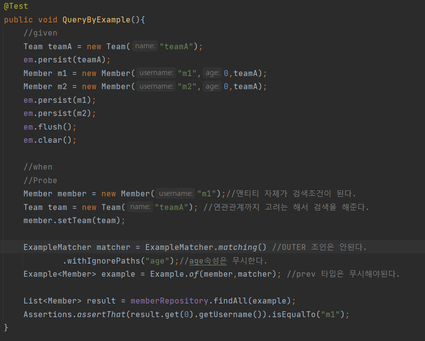 - Example: Probe와 ExampleMatcher로 구성, 쿼리를 생성하는 데 사용