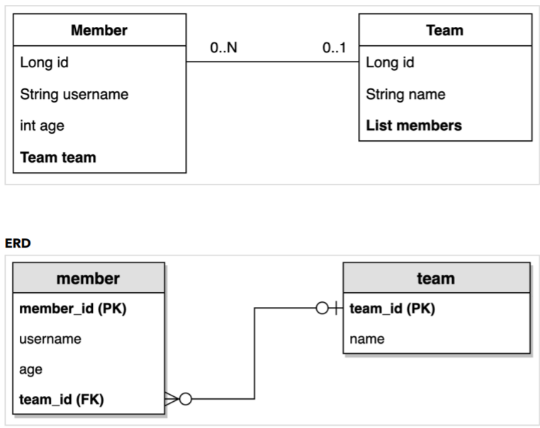 - member - team 이 일대다 관계로 양방향 연관관계를 가지고 있다.